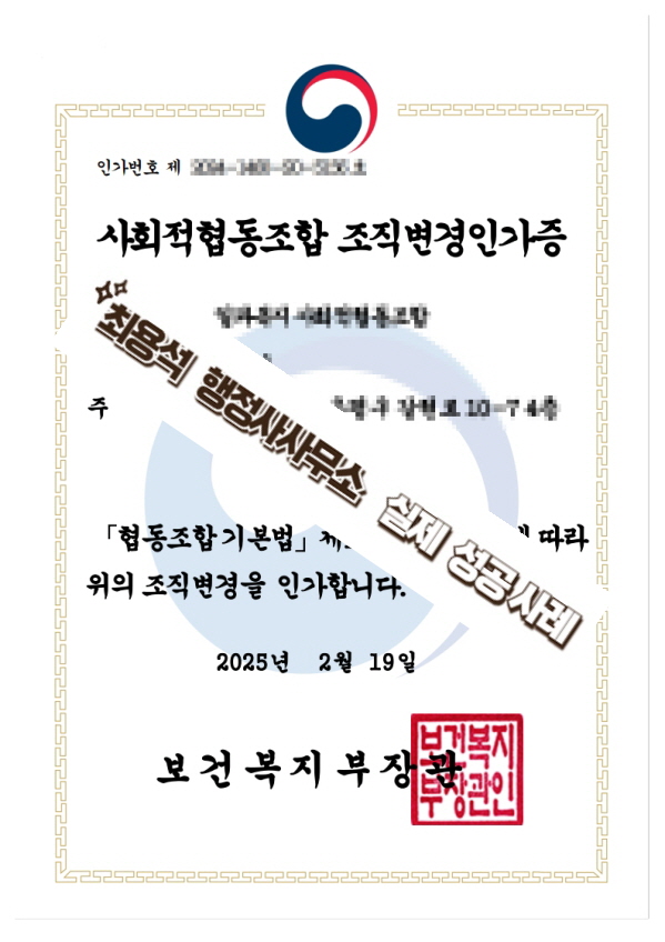 단, 영리법인에서 비영리법인으로 변경되는 경우(예: 주식회사 → 사회적협동조합)는 사업자등록번호 변경이 불가피할 수 있습니다.