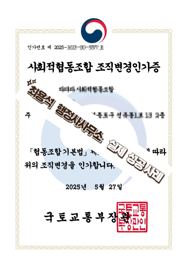 사회적협동조합으로 전환하는 경우, 반드시 주무부처 인가를 먼저 받아야 등기 가능하며, 기한 내 등기를 완료하지 않으면 과태료 처분 또는 인가가 취소될 수 있으니 다음의 조직변경 절차에 따라 적법하게 진행해야 합니다.