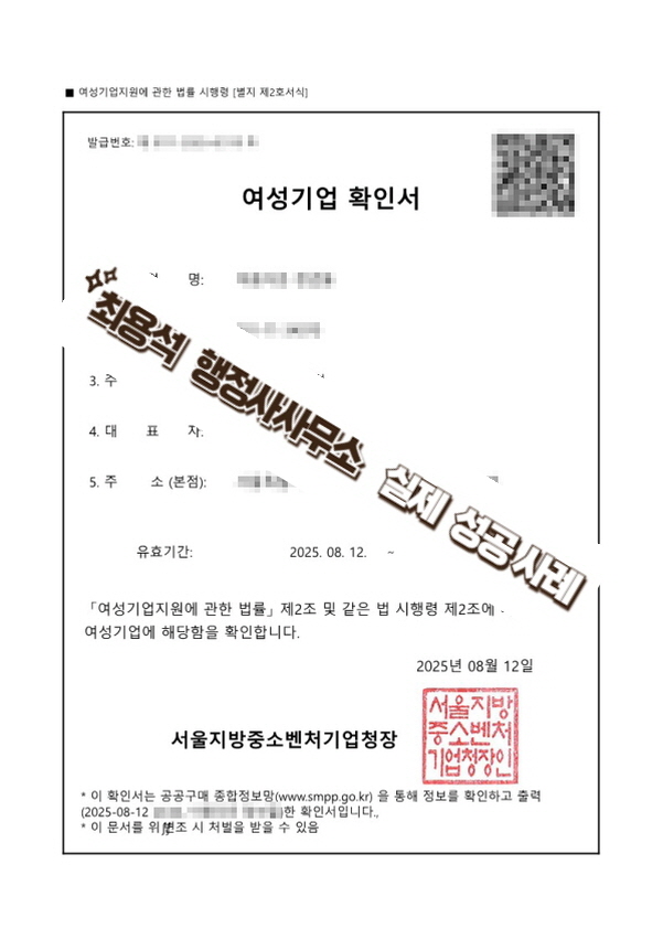 가장 먼저 기본적으로 여성기업 신청 자격을 갖추어야 합니다.